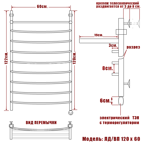 Полотенцесушитель электрический Ника ARC ЛД ВП 120/60 правый тэн - цена 23780 руб. Оформить заказ и купить полотенцесушитель Ника ARC ЛД ВП 120/60 правый тэн в Москве в нашем интернет магазине можно по тел 8 (919) 991-95-00 или добавив товар в корзину.