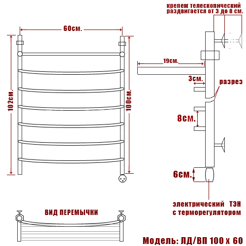 Полотенцесушитель электрический Ника ARC ЛД ВП 100/60 правый тэн - цена 27284 руб. Оформить заказ и купить полотенцесушитель Ника ARC ЛД ВП 100/60 правый тэн в Москве в нашем интернет магазине можно по тел 8 (919) 991-95-00 или добавив товар в корзину.