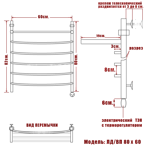 Полотенцесушитель электрический Ника ARC ЛД ВП 80/60 правый тэн - цена 25270 руб. Оформить заказ и купить полотенцесушитель Ника ARC ЛД ВП 80/60 правый тэн в Москве в нашем интернет магазине можно по тел 8 (919) 991-95-00 или добавив товар в корзину.