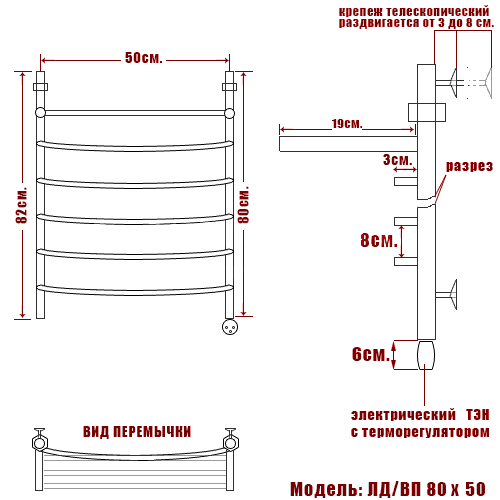 Полотенцесушитель электрический Ника ARC ЛД ВП 80/50 правый тэн - цена 24605 руб. Оформить заказ и купить полотенцесушитель Ника ARC ЛД ВП 80/50 правый тэн в Москве в нашем интернет магазине можно по тел 8 (919) 991-95-00 или добавив товар в корзину.