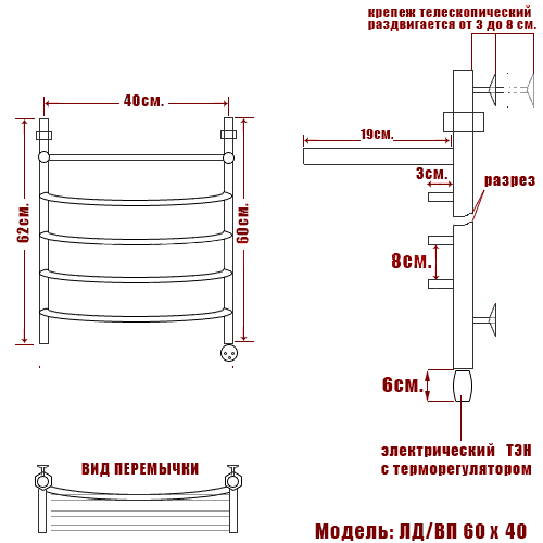 Полотенцесушитель электрический Ника ARC ЛД ВП 60/40 правый тэн - цена 21926 руб. Оформить заказ и купить полотенцесушитель Ника ARC ЛД ВП 60/40 правый тэн в Москве в нашем интернет магазине можно по тел 8 (919) 991-95-00 или добавив товар в корзину.
