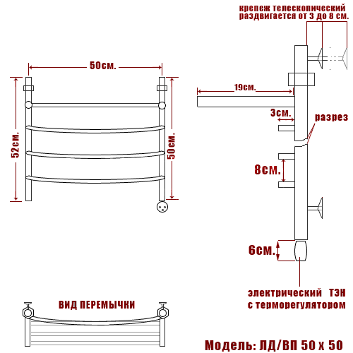 Полотенцесушитель электрический Ника ARC ЛД ВП 50/50 правый тэн - цена 20156 руб. Оформить заказ и купить полотенцесушитель Ника ARC ЛД ВП 50/50 правый тэн в Москве в нашем интернет магазине можно по тел 8 (919) 991-95-00 или добавив товар в корзину.
