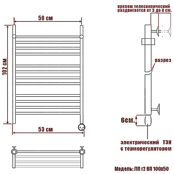 Полотенцесушитель электрический Ника CLASSIC ЛП (Г2) ВП 100/50 левый тэн - цена 27997 руб. Оформить заказ и купить полотенцесушитель Ника CLASSIC ЛП (Г2) ВП 100/50 левый тэн в Москве в нашем интернет магазине можно по тел 8 (919) 991-95-00 или добавив товар в корзину.