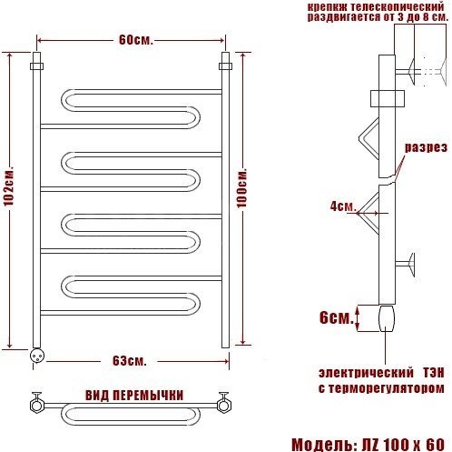 Комплектация: полотенцесушитель; паспорт на изделие; колпачок декоративный; кран Маевского; крепеж телескопический без кольца.
