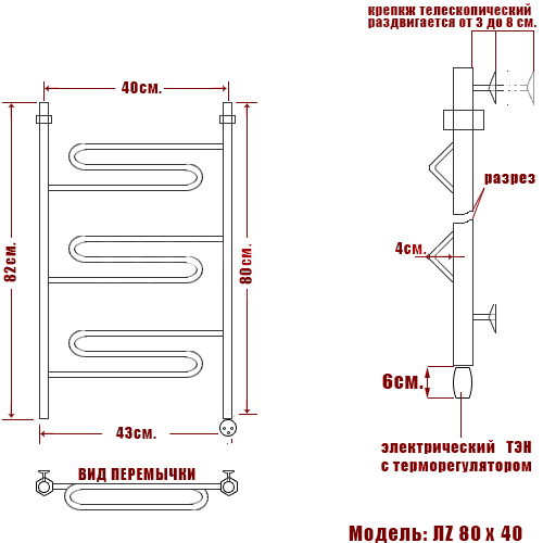 Полотенцесушитель электрический Ника CURVE ЛZ 80/40 правый тэн - цена 22382 руб. Оформить заказ и купить полотенцесушитель Ника CURVE ЛZ 80/40 правый тэн в Москве в нашем интернет магазине можно по тел 8 (919) 991-95-00 или добавив товар в корзину.