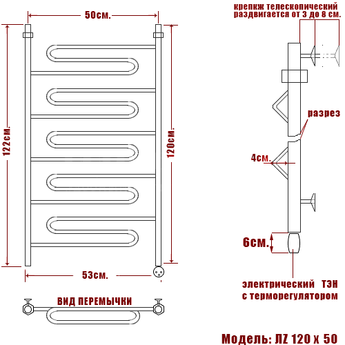 Полотенцесушитель электрический Ника CURVE ЛZ 120/50 правый тэн - цена 25280 руб. Оформить заказ и купить полотенцесушитель Ника CURVE ЛZ 120/50 правый тэн в Москве в нашем интернет магазине можно по тел 8 (919) 991-95-00 или добавив товар в корзину.