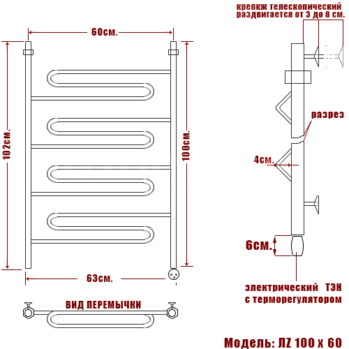 Полотенцесушитель электрический Ника CURVE ЛZ 100/60 правый тэн - цена 25726 руб. Оформить заказ и купить полотенцесушитель Ника CURVE ЛZ 100/60 правый тэн в Москве в нашем интернет магазине можно по тел 8 (919) 991-95-00 или добавив товар в корзину.