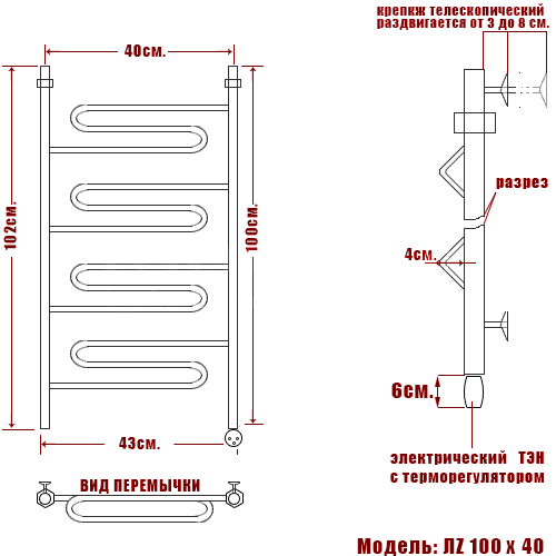 Полотенцесушитель электрический Ника CURVE ЛZ 100/40 правый тэн - цена 24387 руб. Оформить заказ и купить полотенцесушитель Ника CURVE ЛZ 100/40 правый тэн в Москве в нашем интернет магазине можно по тел 8 (919) 991-95-00 или добавив товар в корзину.
