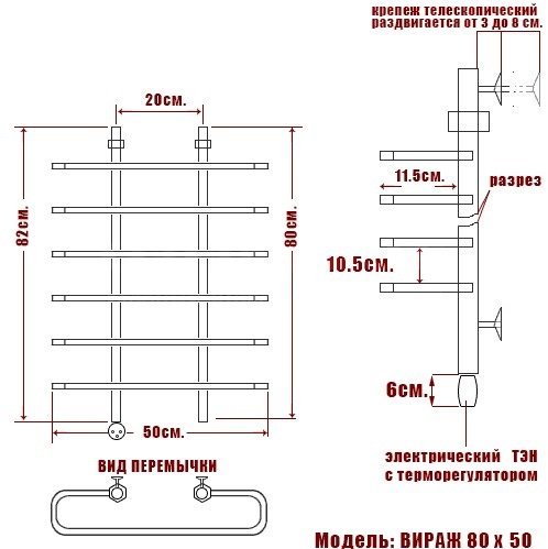 Полотенцесушитель электрический Ника MIX ВИРАЖ 80/50 левый тэн - цена 23695 руб. Оформить заказ и купить полотенцесушитель Ника MIX ВИРАЖ 80/50 левый тэн в Москве в нашем интернет магазине можно по тел 8 (919) 991-95-00 или добавив товар в корзину.