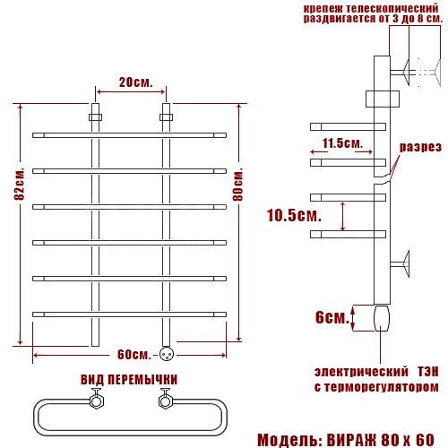 Полотенцесушитель электрический Ника MIX ВИРАЖ 80/60 правый тэн - цена 21150 руб. Оформить заказ и купить полотенцесушитель Ника MIX ВИРАЖ 80/60 правый тэн в Москве в нашем интернет магазине можно по тел 8 (919) 991-95-00 или добавив товар в корзину.