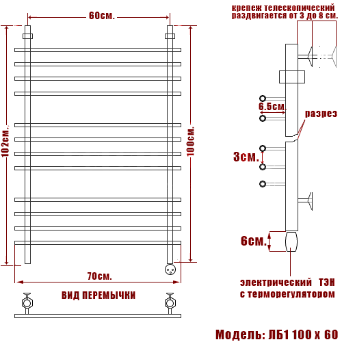 Полотенцесушитель электрический Ника BAMBOO ЛБ-1 100/60 правый тэн - цена 31474 руб. Оформить заказ и купить полотенцесушитель Ника BAMBOO ЛБ-1 100/60 правый тэн в Москве в нашем интернет магазине можно по тел 8 (919) 991-95-00 или добавив товар в корзину.