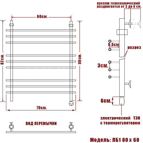 Полотенцесушитель электрический Ника BAMBOO ЛБ-1 80/60 правый тэн - цена 23930 руб. Оформить заказ и купить полотенцесушитель Ника BAMBOO ЛБ-1 80/60 правый тэн в Москве в нашем интернет магазине можно по тел 8 (919) 991-95-00 или добавив товар в корзину.