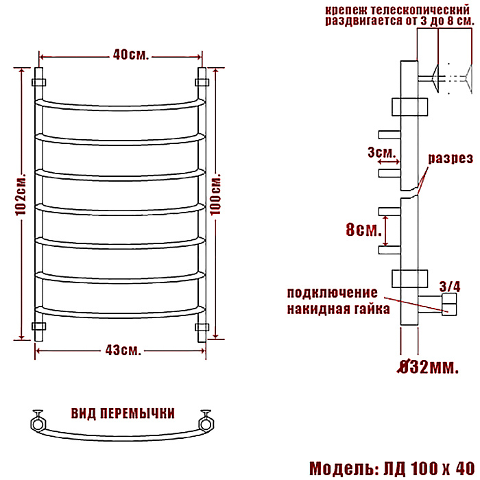 Полотенцесушитель водяной Ника ARC ЛД 100/40 RAL9016 белый матовый - цена 21869 руб. Оформить заказ и купить полотенцесушитель Ника ARC ЛД 100/40 RAL9016 белый матовый в Москве в нашем интернет магазине можно по тел 8 (919) 991-95-00 или добавив товар в корзину.