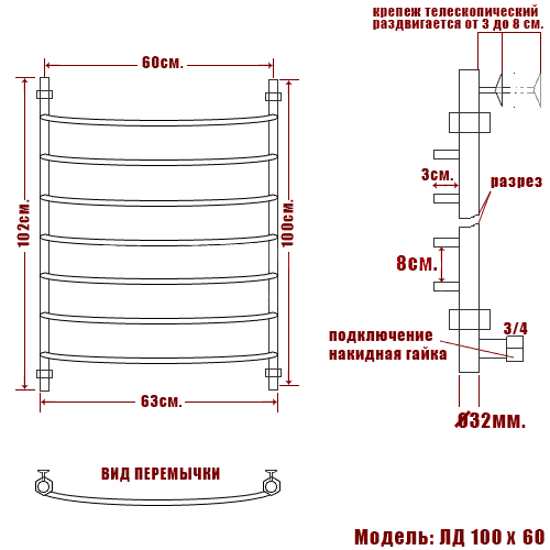 Полотенцесушитель водяной Ника ARC ЛД 100/60 бронза - цена 29230 руб. Оформить заказ и купить полотенцесушитель Ника ARC ЛД 100/60 бронза в Москве в нашем интернет магазине можно по тел 8 (919) 991-95-00 или добавив товар в корзину.