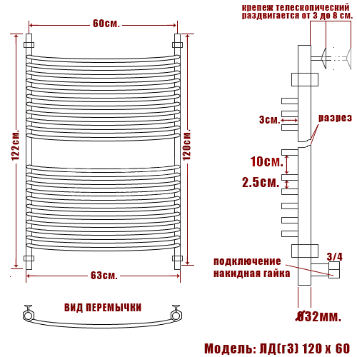 Полотенцесушитель водяной Ника ARC ЛД (Г3) 120/60 - цена 20720 руб. Оформить заказ и купить полотенцесушитель Ника ARC ЛД (Г3) 120/60 в Москве в нашем интернет магазине можно по тел 8 (919) 991-95-00 или добавив товар в корзину.