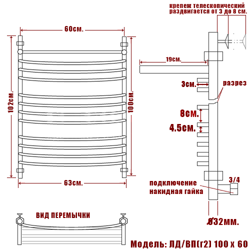Полотенцесушитель водяной Ника ARC ЛД (Г2) ВП 100/60 - цена 21090 руб. Оформить заказ и купить полотенцесушитель Ника ARC ЛД (Г2) ВП 100/60 в Москве в нашем интернет магазине можно по тел 8 (919) 991-95-00 или добавив товар в корзину.