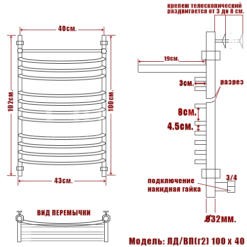 Полотенцесушитель водяной Ника ARC ЛД (Г2) ВП 100/40 - цена 19912 руб. Оформить заказ и купить полотенцесушитель Ника ARC ЛД (Г2) ВП 100/40 в Москве в нашем интернет магазине можно по тел 8 (919) 991-95-00 или добавив товар в корзину.