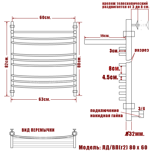 Полотенцесушитель водяной Ника ARC ЛД (Г2) ВП 80/60 - цена 19323 руб. Оформить заказ и купить полотенцесушитель Ника ARC ЛД (Г2) ВП 80/60 в Москве в нашем интернет магазине можно по тел 8 (919) 991-95-00 или добавив товар в корзину.