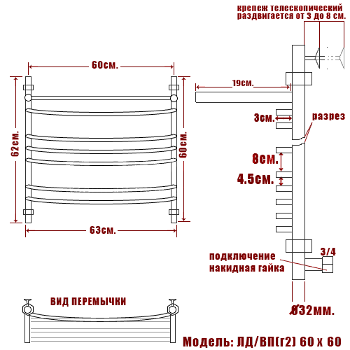 Полотенцесушитель водяной Ника ARC ЛД (Г2) ВП 60/60 - цена 17556 руб. Оформить заказ и купить полотенцесушитель Ника ARC ЛД (Г2) ВП 60/60 в Москве в нашем интернет магазине можно по тел 8 (919) 991-95-00 или добавив товар в корзину.