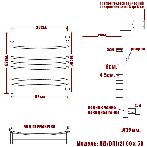 Полотенцесушитель водяной Ника ARC ЛД (Г2) ВП 60/50 - цена 16967 руб. Оформить заказ и купить полотенцесушитель Ника ARC ЛД (Г2) ВП 60/50 в Москве в нашем интернет магазине можно по тел 8 (919) 991-95-00 или добавив товар в корзину.
