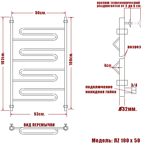 Полотенцесушитель водяной Ника CURVE ЛZ 100/50 - цена 17851 руб. Оформить заказ и купить полотенцесушитель Ника CURVE ЛZ 100/50 в Москве в нашем интернет магазине можно по тел 8 (919) 991-95-00 или добавив товар в корзину.
