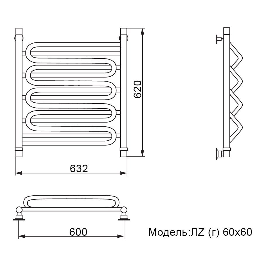 Полотенцесушитель водяной Ника CURVE ЛZ (Г) 60/60 - цена 16950 руб. Оформить заказ и купить полотенцесушитель Ника CURVE ЛZ (Г) 60/60 в Москве в нашем интернет магазине можно по тел 8 (919) 991-95-00 или добавив товар в корзину.