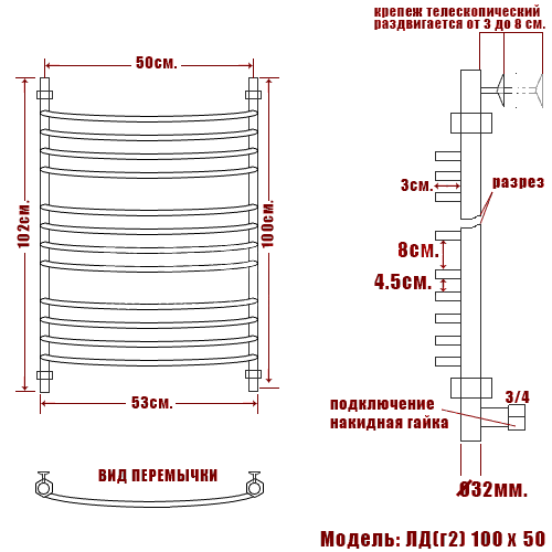 Полотенцесушитель водяной Ника ARC ЛД (Г2) 100/50 - цена 18734 руб. Оформить заказ и купить полотенцесушитель Ника ARC ЛД (Г2) 100/50 в Москве в нашем интернет магазине можно по тел 8 (919) 991-95-00 или добавив товар в корзину.