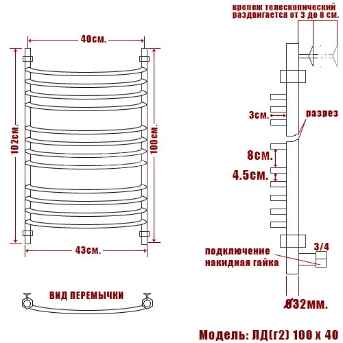 Полотенцесушитель водяной Ника ARC ЛД (Г2) 100/40 - цена 18145 руб. Оформить заказ и купить полотенцесушитель Ника ARC ЛД (Г2) 100/40 в Москве в нашем интернет магазине можно по тел 8 (919) 991-95-00 или добавив товар в корзину.