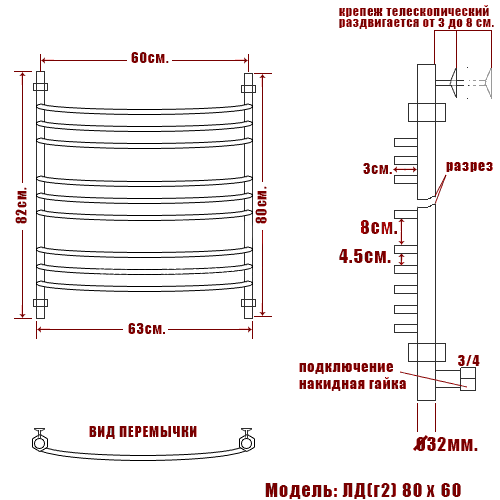 Полотенцесушитель водяной Ника ARC ЛД (Г2) 80/60 - цена 17556 руб. Оформить заказ и купить полотенцесушитель Ника ARC ЛД (Г2) 80/60 в Москве в нашем интернет магазине можно по тел 8 (919) 991-95-00 или добавив товар в корзину.
