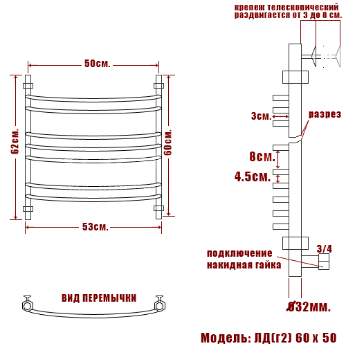 Полотенцесушитель водяной Ника ARC ЛД (Г2) 60/50 - цена 15191 руб. Оформить заказ и купить полотенцесушитель Ника ARC ЛД (Г2) 60/50 в Москве в нашем интернет магазине можно по тел 8 (919) 991-95-00 или добавив товар в корзину.