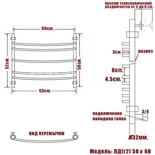 Полотенцесушитель водяной Ника ARC ЛД (Г2) 50/60 - цена 12100 руб. Оформить заказ и купить полотенцесушитель Ника ARC ЛД (Г2) 50/60 в Москве в нашем интернет магазине можно по тел 8 (919) 991-95-00 или добавив товар в корзину.
