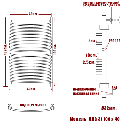 Полотенцесушитель водяной Ника ARC ЛД (Г3) 100/40 - цена 18330 руб. Оформить заказ и купить полотенцесушитель Ника ARC ЛД (Г3) 100/40 в Москве в нашем интернет магазине можно по тел 8 (919) 991-95-00 или добавив товар в корзину.