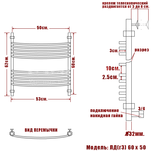 Полотенцесушитель водяной Ника ARC ЛД (Г3) 60/50 - цена 15930 руб. Оформить заказ и купить полотенцесушитель Ника ARC ЛД (Г3) 60/50 в Москве в нашем интернет магазине можно по тел 8 (919) 991-95-00 или добавив товар в корзину.