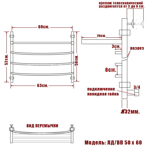 Полотенцесушитель водяной Ника ARC ЛД ВП 50/60 - цена 14331 руб. Оформить заказ и купить полотенцесушитель Ника ARC ЛД ВП 50/60 в Москве в нашем интернет магазине можно по тел 8 (919) 991-95-00 или добавив товар в корзину.