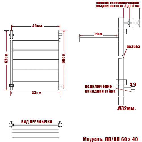 Полотенцесушитель водяной Ника CLASSIC ЛП ВП 60/40 - цена 15067 руб. Оформить заказ и купить полотенцесушитель Ника CLASSIC ЛП ВП 60/40 в Москве в нашем интернет магазине можно по тел 8 (919) 991-95-00 или добавив товар в корзину.