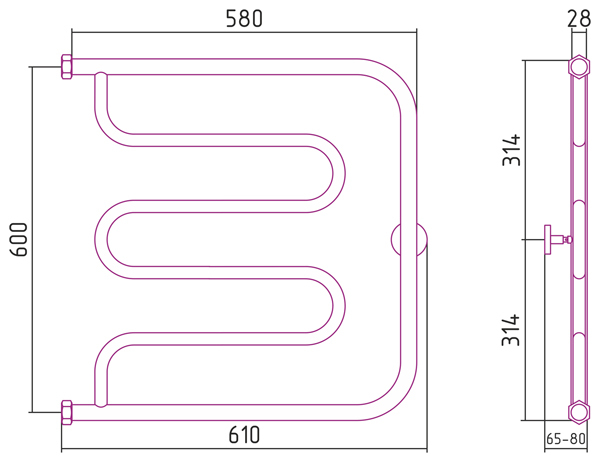 Полотенцесушитель водяной Сунержа М образный 60x60
