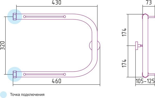 Полотенцесушитель водяной Сунержа П образный - 01-0004-3245