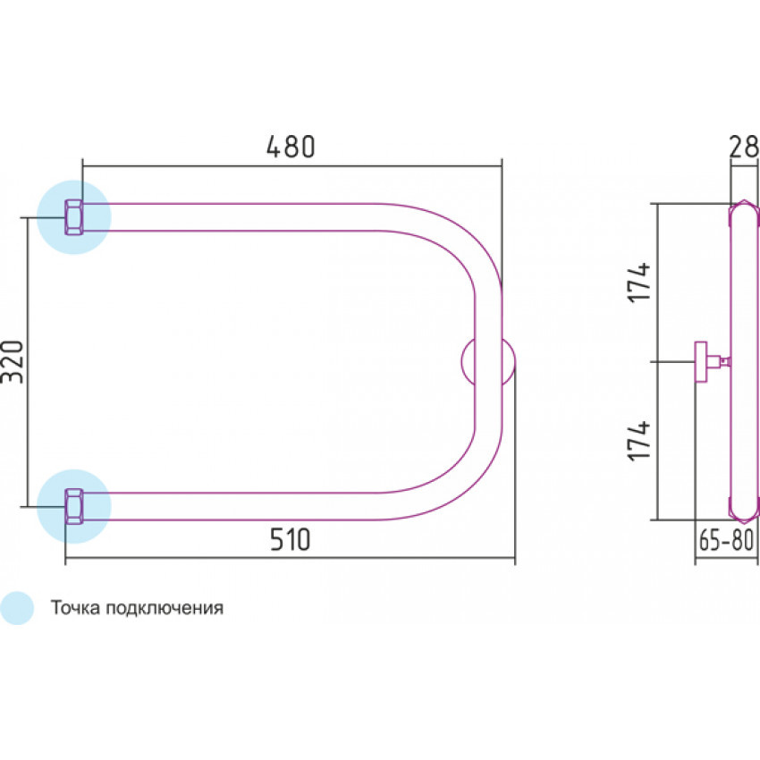 Полотенцесушитель водяной Сунержа П образный - 03-0003-3250