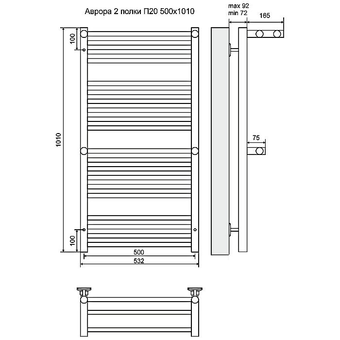 Полотенцесушитель водяной Terminus Аврора 101х50 с 2 полками - цена 23790 руб. Оформить заказ и купить полотенцесушитель Terminus Аврора 101х50 с 2 полками в Москве в нашем интернет магазине можно по тел 8 (919) 991-95-00 или добавив товар в корзину.