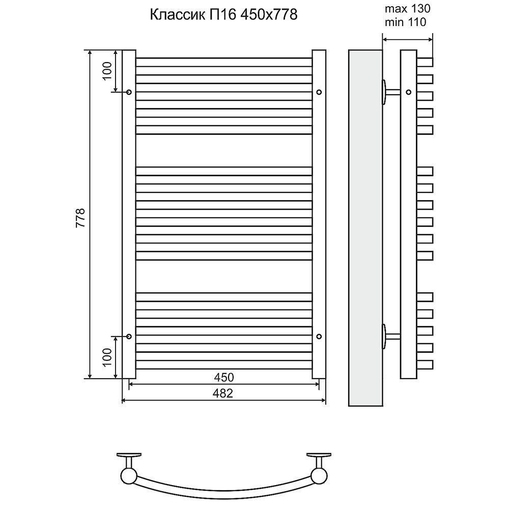 Комплектация: телескопические держатели к стене; кран Маевского; заглушки; паспорт изделия.