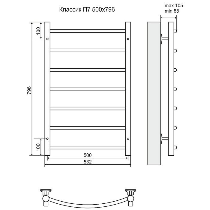 Комплектация: телескопические держатели к стене; кран Маевского; заглушки; паспорт изделия.