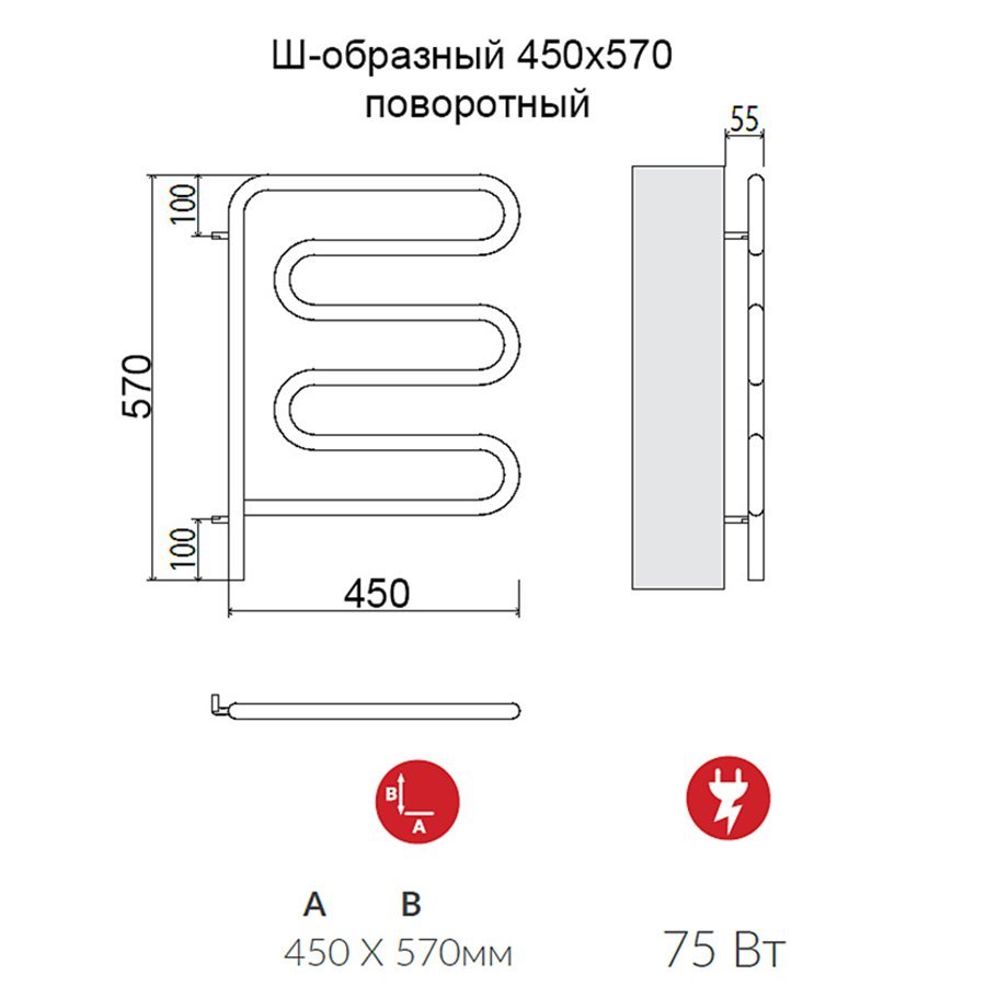 Полотенцесушитель электрический Terminus 57х45 Ш-образный поворотный - цена 7410 руб. Оформить заказ и купить полотенцесушитель Terminus 57х45 Ш-образный поворотный в Москве в нашем интернет магазине можно по тел 8 (919) 991-95-00 или добавив товар в корзину.