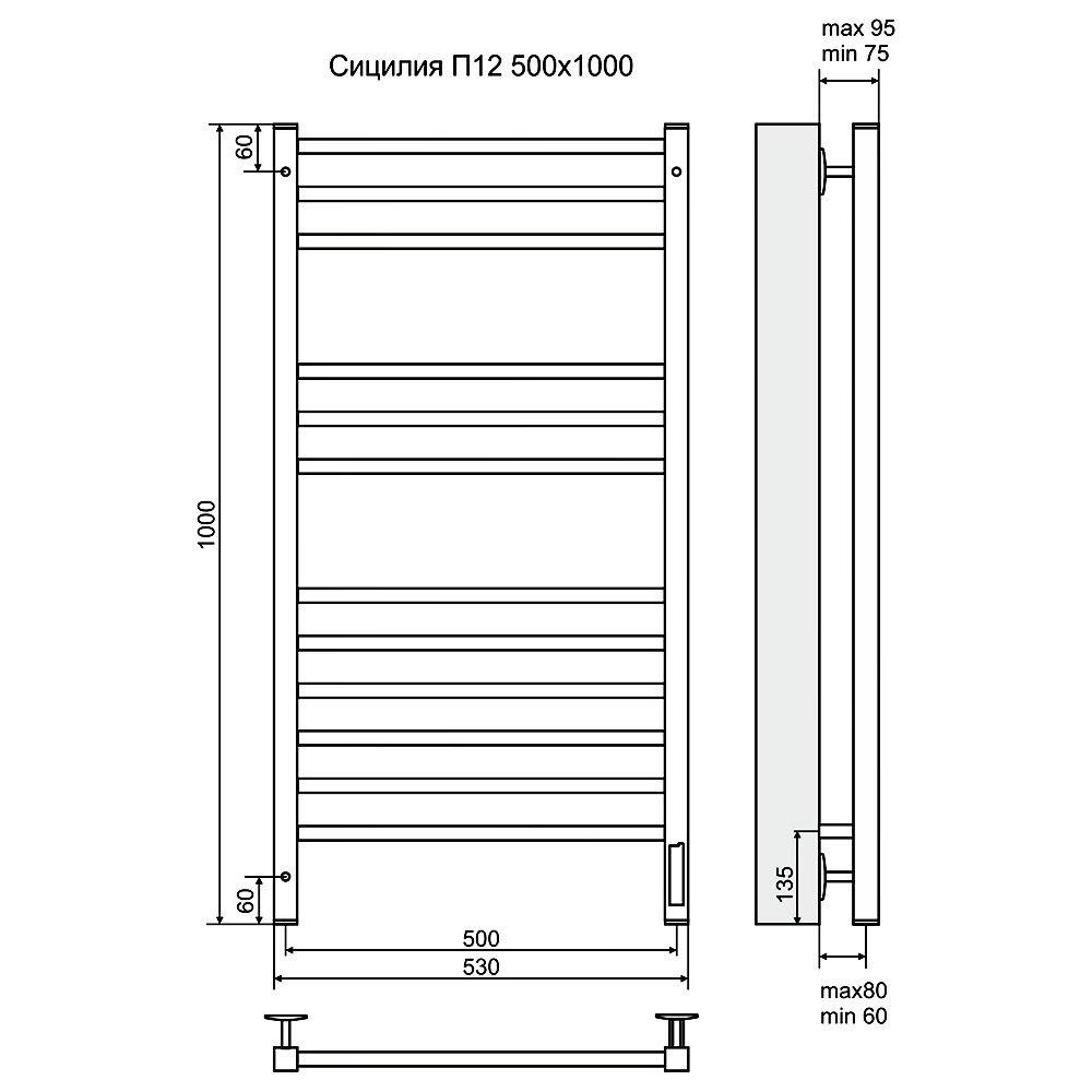 Полотенцесушитель электрический Terminus Сицилия Люкс 100х53 - цена 36870 руб. Оформить заказ и купить полотенцесушитель Terminus Сицилия Люкс 100х53 в Москве в нашем интернет магазине можно по тел 8 (919) 991-95-00 или добавив товар в корзину.