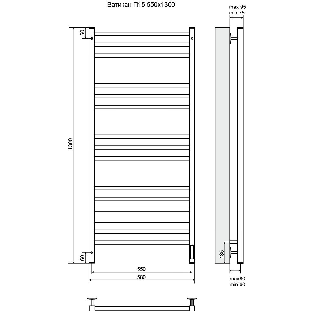 Полотенцесушитель электрический Terminus Ватикан 130,05х58,5 - цена 59880 руб. Оформить заказ и купить полотенцесушитель Terminus Ватикан 130,05х58,5 в Москве в нашем интернет магазине можно по тел 8 (919) 991-95-00 или добавив товар в корзину.