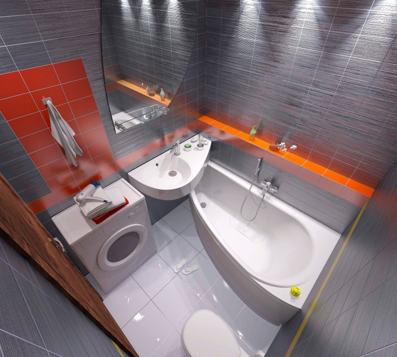 Размер и форма раковины позволяют разместить ее над узкой частью ванны, при этом раковина не будет мешать купанию.