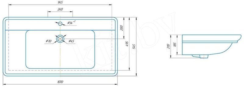 Раковина универсальная с отверстием под перелив, имеет одно отверстие под смеситель, расположение в центре.