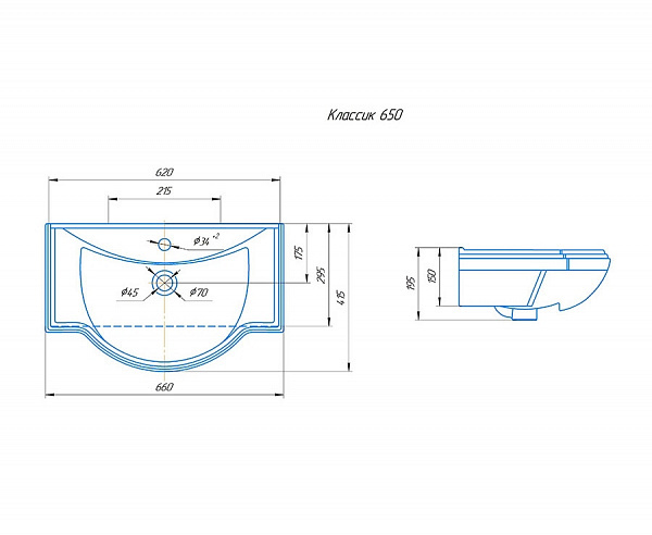 Российская раковина для мебели Kirovit Классик 65 - цена 4118 руб. Оформить заказ и купить раковину Kirovit Классик 65 в Москве в нашем интернет магазине можно по тел 8 (919) 991-95-00 или добавив товар в корзину.