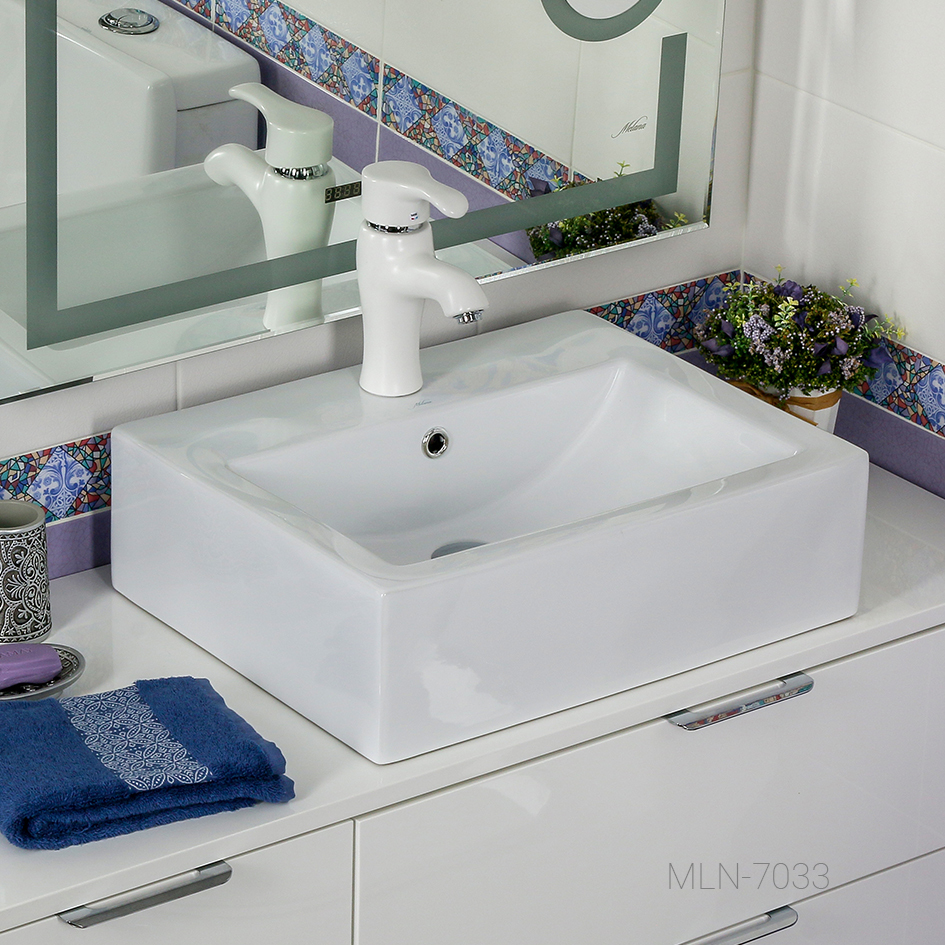 Российская накладная раковина Melana 52x41 прямоугольная белая - цена 10260 руб. Оформить заказ и купить раковину Melana 52x41 прямоугольная белая в Москве в нашем интернет магазине можно по тел 8 (919) 991-95-00 или добавив товар в корзину.