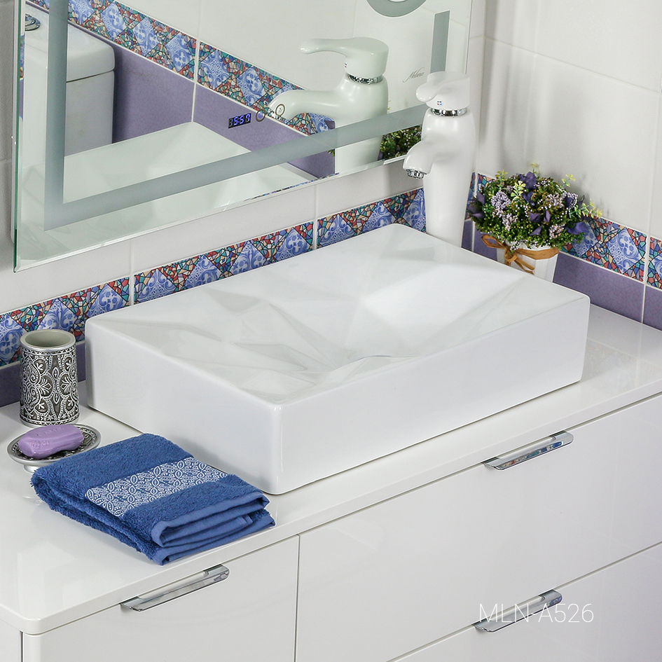 Российская накладная раковина Melana 56,5x36 прямоугольная белая - цена 11690 руб. Оформить заказ и купить раковину Melana 56,5x36 прямоугольная белая в Москве в нашем интернет магазине можно по тел 8 (919) 991-95-00 или добавив товар в корзину.