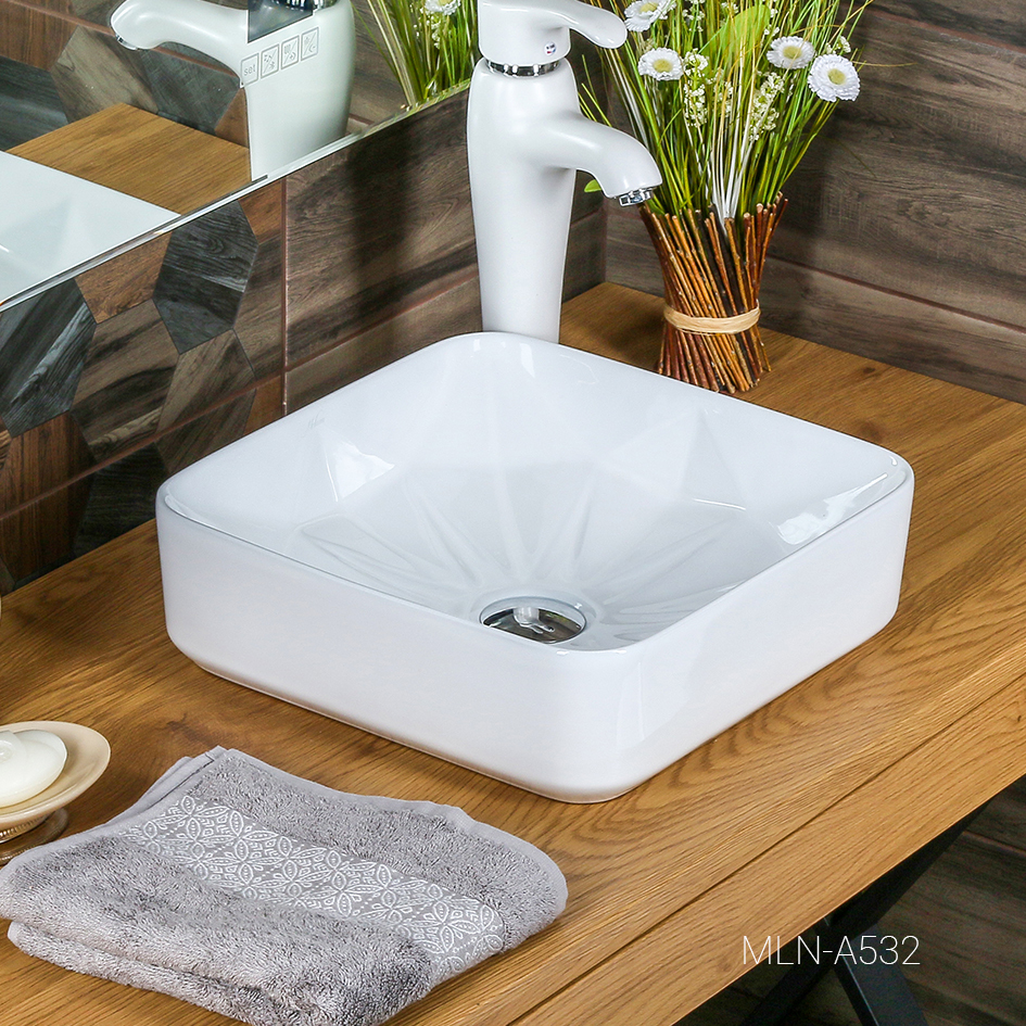 Российская накладная раковина Melana 37x37 квадратная белая - цена 11730 руб. Оформить заказ и купить раковину Melana 37x37 квадратная белая в Москве в нашем интернет магазине можно по тел 8 (919) 991-95-00 или добавив товар в корзину.